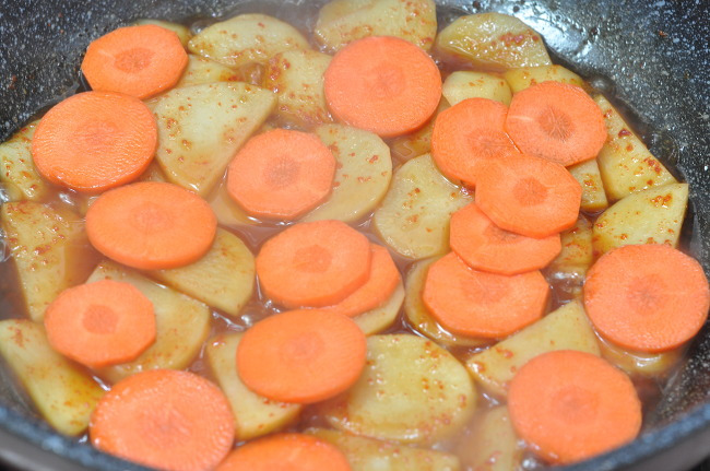이렇게 감자를 익힌 뒤에 준비된 당근을 넣고
