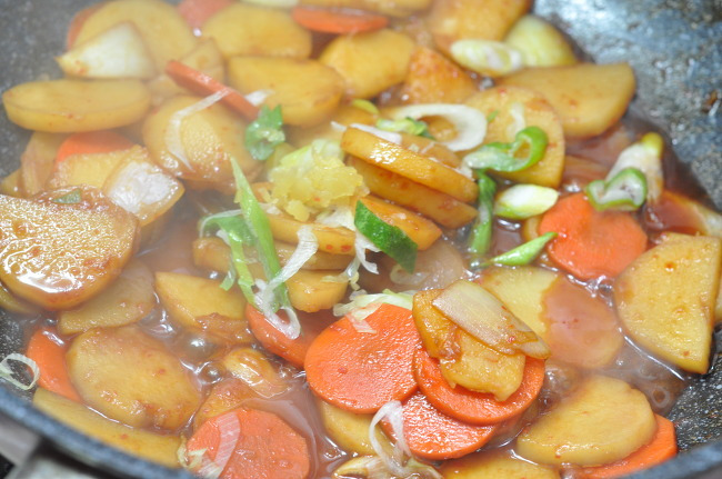 다시 2분정도 지나고 감자와 양파가 어느정도 익은 뒤