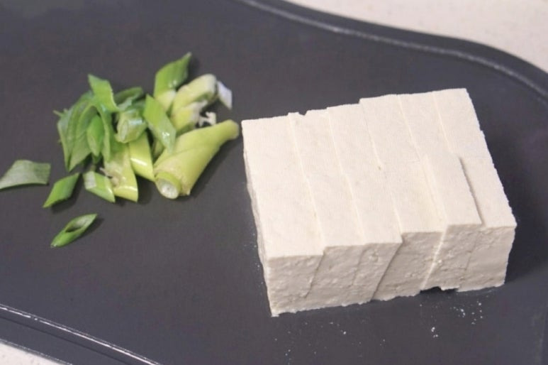 1.송송 썬 대파 한 줌과, 두부 300g,