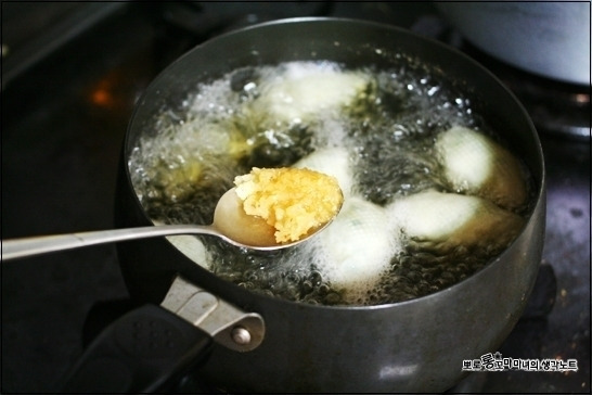 냄비안에 훌훌 넣어서 살짝만 저어주세요.