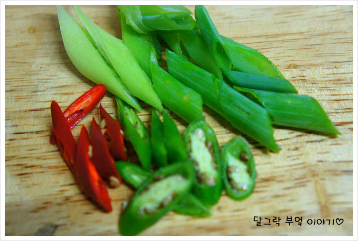 대파와 청양고추도 어슷 썰어 준비한 다음,