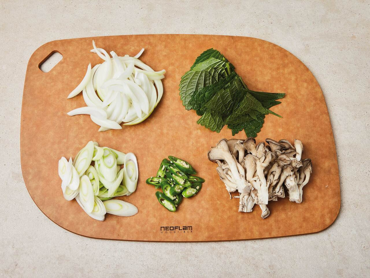2. 양파는 굵게 채 썰고, 깻잎은 6등분하고, 대파와 청양고추는 길게 어슷 썰고,